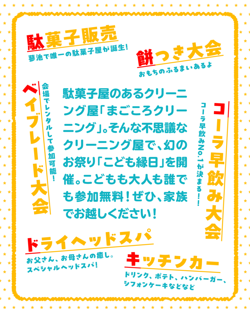 ⭐駄菓子販売⭐餅つき大会⭐ベイブレード大会⭐コーラ早飲み大会⭐ドライヘッドスパ⭐キッチンカー