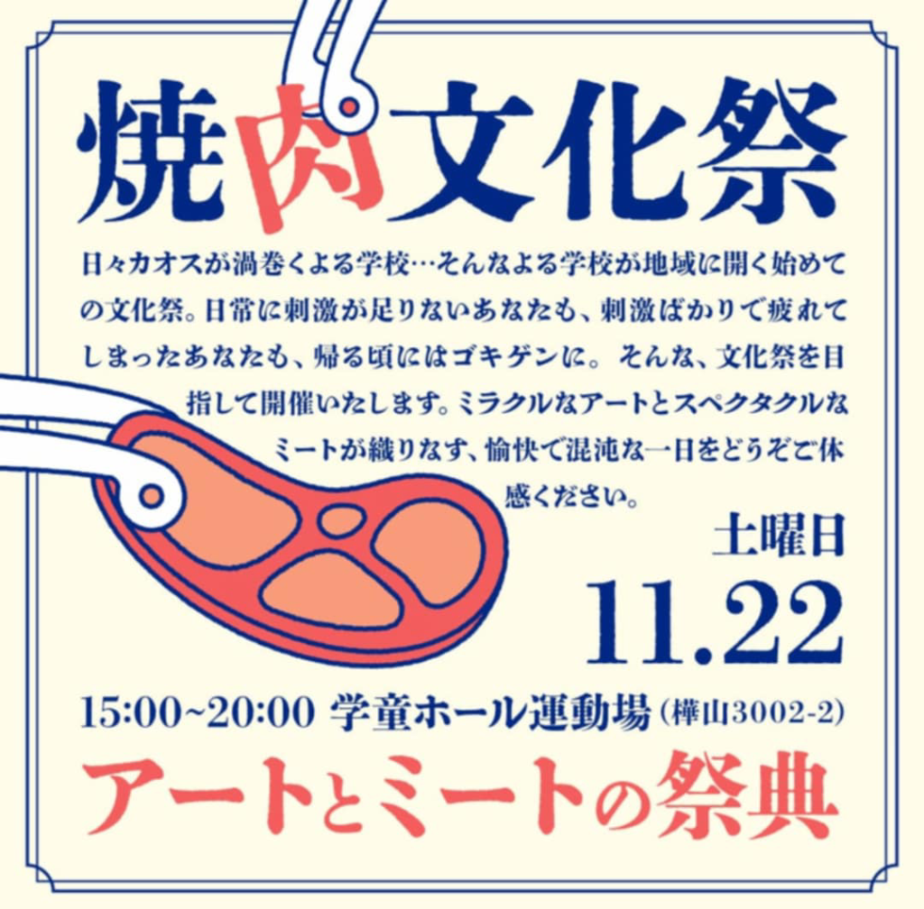 今年の秋は、秋だったのか、夏だったのか、秋があったのかもわからないような、不思議な季節でしたね。そんな中で11月22日、三股町よる学校で初めての文化祭が開かれました。その名も「アートとミートの祭典」。芸術の秋と食欲の秋、その両方を満たしてしまおうという、なんとも欲張りな文化祭です。