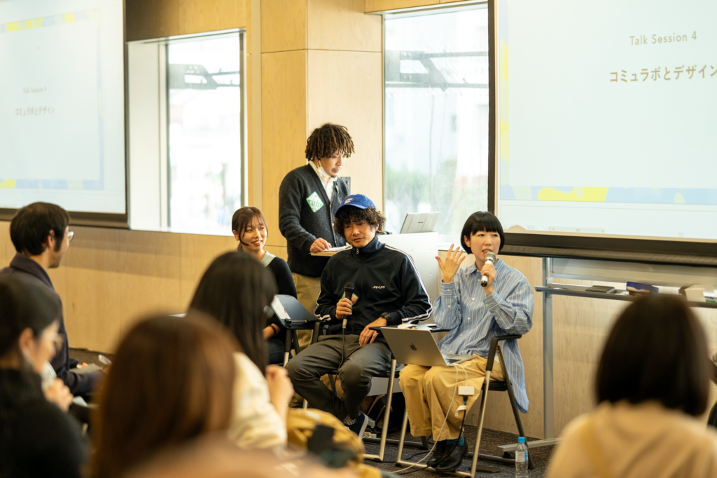 まずコミュラボの5年間を振り返りながら議論が始まったこのセッション。コミュラボの転機は、みまたん宅食どうぞ便の実践だった。従来の“困っている人を支援する”という構図では届かなかった家庭に、デザインや言葉、動線を整えることで初めて届いた体験について語った。さらに、議論は「福祉と楽しさ」に及び、楽しさのレイヤーや距離感などについて語られた。