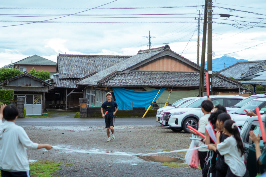 「途中、世界三股陸上が中止と聞いて、がっかりしてリタイアしようかと思ったんです。でも諦めなくて良かった。みんなが迎えてくれると思っていなかったので、完走できて嬉しい。疲れた、、、」