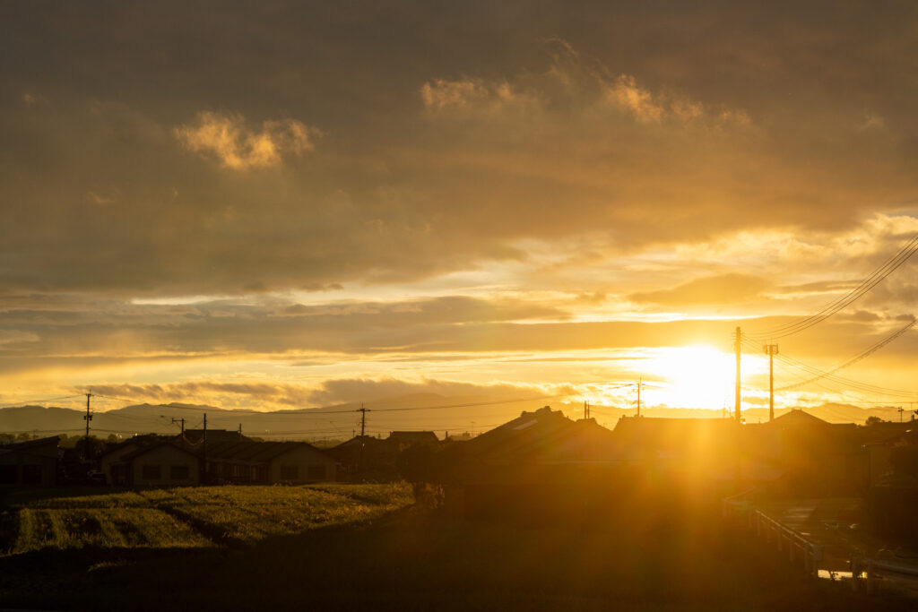 その頃、勢力を弱めた台風は過ぎ去り、まるで私たちを祝福してくれるかのように、夕日が雲の切れ間から差し込んでいた。